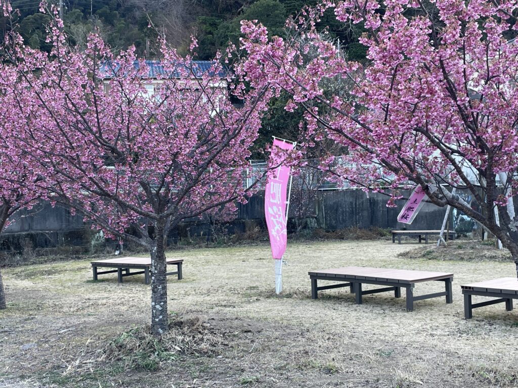 途中、土肥にて。土肥桜という種類なんだそう。もう咲いているのですね。誰もいませんでしたが(笑)